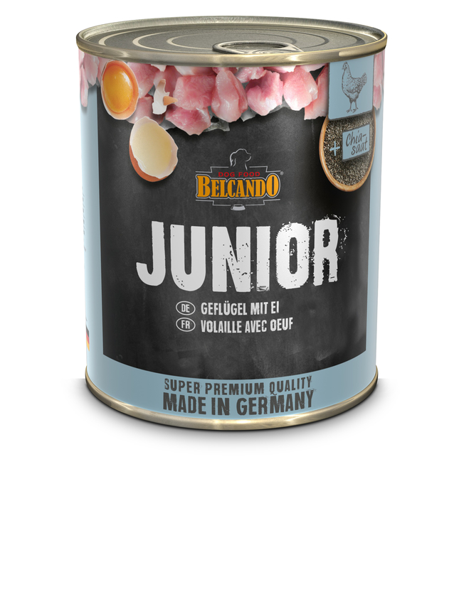 BELCANDO (Белькандо) Для цуценят птах з яйцем - НОВІ КОНСЕРВИ BELCANDO – якісний німецький продукт, виготовлений із натуральної сировини. Шість унікальних рецептур з великою кількістю м'яса мають у складі ряд цінних компонентів: олія будяка багата жирними кислотами, що покращують кровообіг і харчування тканин; насіння чиа для підтримки травлення, здоров'я шкіри та вовни. У виробництві консервів не використовуються барвники, ароматизатори та консерванти.
