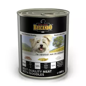 BELCANDO (Белькандо) добірне м'ясо з локшиною – високоякісний консервований корм для Вашого собаки. 5 різних видів консервів, сировина для яких поставляється від надійних німецьких фермерських господарств. Використовуються не формовані м'ясні вироби, лише справжні шматки м'яса. Кожен вид має оригінальний склад інгредієнтів і містить цінну олію чортополоху, багату на поліненасичені жирні кислоти.